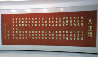 毛泽东后来看过两部话剧,一部是《霓虹灯下的哨兵》,一部是《雷锋》。毛泽东一生只作诗赞颂过一个连队,那就是“南京路上好八连”。1963年7月29日晚,话剧《霓虹灯下的哨兵》在中南海怀仁堂上演,毛泽东是该剧的主要观众。《霓虹灯下的哨兵》进一步加深了毛泽东对八连的印象,八连的精神与毛泽东的所思所虑产生了共鸣,在中国共产党、中国人民面临严峻挑战之际,多么需要站稳脚根、保持本色、不屈不挠、团结一致啊!1963年八一建军节那天凌晨,彻夜未寐的毛泽东挥笔写下了著名的《八连颂》。 [详细]