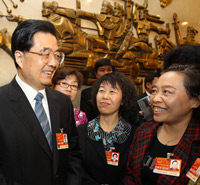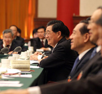 6日[人大举行代表团全体会议 审查"十二五"规划纲要草案]