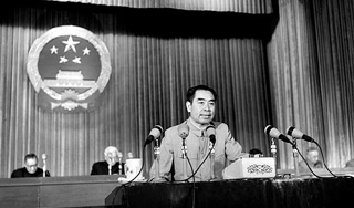 1954年9月,周恩来在全国人大一届一次会议上首作《政府工作报告》。1975年第四届人大第一次会议,周总理仍然没有忘记十年前提出的强国梦——四个现代化,人民大会堂万人大厅内,又再次响起周恩来总理坚定、清晰的苏北口音。而这也是周总理最后一次作政府工作报告。周恩来一共当了4届总理,作了11次政府工作报告。1982年宪法规定总理有任期限制,之后每届任期5年,最多不超过2届。周恩来多年的辛劳工作不仅赢得了极高的威望,最重要的是他获得了人民的真心拥戴。[详细]