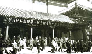 1954年9月,第一届全国人民代表大会第一次会议召开。这次会议制定了新中国的第一部宪法,并对人民代表大会制度作出比较系统的规定,确立了全国人民代表大会为最高国家权力机关,它的常设机关是全国人大常委会,国务院是最高国家权力机关的执行机关,是最高行政机关。按照宪法规定,由全国人民代表大会产生中华人民共和国主席和全国人大常委会、国务院、最高人民法院、最高人民检察院等国家机关。至此,我国以人民代表大会为基础的政权制度全面确立,国家权力开始由人民选举产生的人民代表大会统一行使。这是我国人民民主发展的一个重要里程碑。人民代表大会全面建立后的前三年,人大工作相当活跃,立法、监督和代表视察等都取得了一定的成效。可以说是建国之后人大工作第一个比较好的历史时期。同时第一届全国人民代表大会第一次会议也为我国的人民代表大会制度奠定了坚实的基础。 [详细]