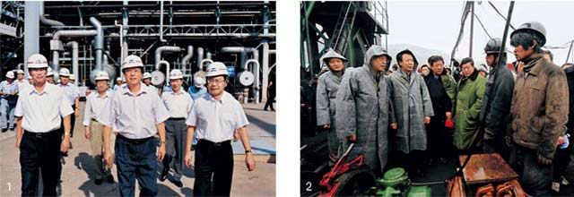 2008年9月2日,张德江调研燕山石化公司生产经营工作。新华社记者刘建生摄(上图左1)