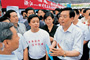 2008年6月29日,张德江在四川省都江堰市劳务输出专场招聘会现场了解对口支援省市就业援助情况。新华社记者张维革摄