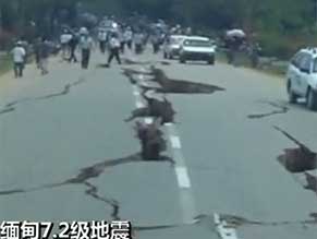 中国地震台网测定,北京时间2011年3月24日21时55分,缅甸(北纬20.8,东经99.8)发生7.2级地震, 震源深度20公里。泰国曼谷一些建筑物还曾产生晃动,专家估计将造成较大人员伤亡。
