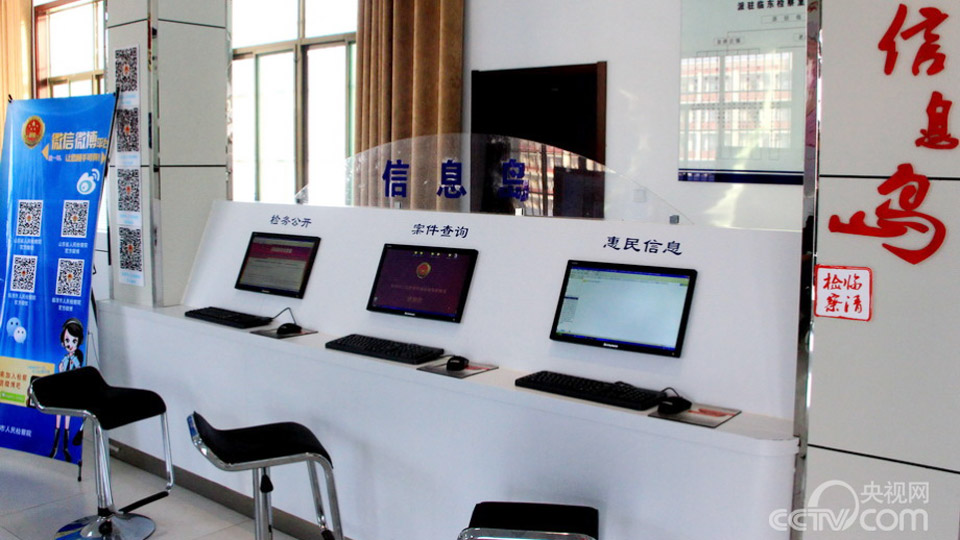 地处乡镇的派驻检察室大厅建起了功能丰富的“信息岛”,群众可以进行案件查询,了解检务公开及惠民政策。