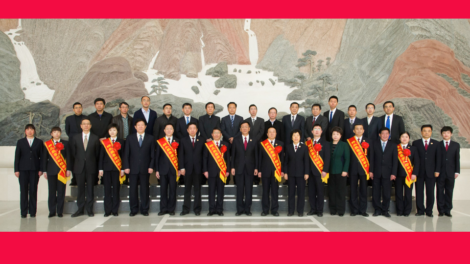 2月13日,最高人民检察院检察长曹建明与获得首届群众最喜爱的检察官称号的10名先进个人合影留念。