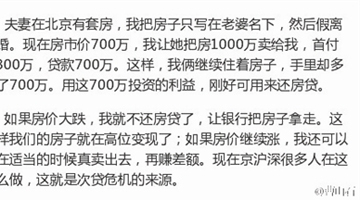 2016-03-29 04:52:23最近,社交媒体上疯传一线城市炒房的 “终极模式”,通过这种方法,炒房者可以通过已有房产套取银行资金,套取的资金可以拿去继续炒房;同时,这样操作风险完全丢给了银行,炒房者不担任何风险。好像一时间大家都找到了炒房的“终极秘籍”,但事实真像这道题一样美好吗?[详细]