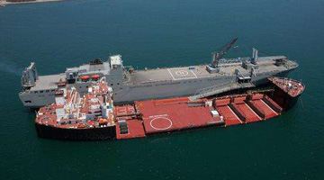 我国首艘军民两用五万吨级半潜船14日在江苏投入使用,该船总长227米,航速14节,续航力18000海里,可承担万吨级舰船靠泊中转倒运、直升机海上中继保障、舰船海上应急抢修和后送等功能。[详细]