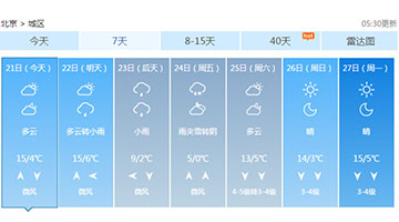 2017-03-31 09:28:39受冷空气影响,预计本周北京以阴雨天气为主,气温低迷,周五的最低气温甚至可能再次跌回0℃,入春的进程中断,公众需及时添衣保暖。昨天是春分节气,但随着冷空气到来,京城普降小雨,气温下跌,最高气温仅13.1℃。贵如油的春雨给北京带来了久违的湿润空气,今晨6时30分,北京的相对湿度仍有80%,但能见度不佳,仅有1-5公里,公众驾车出行需注意交通安全。[详细]