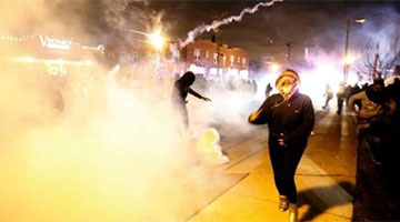2014-11-26 09:45:24美国密苏里州大陪审团24日晚间决定不起诉8月枪杀非裔少年的警员后,全美各地爆发大规模示威游行,涉及34个州的90座城市;圣路易斯地区地区经历一夜骚乱,枪声频传,并出现纵火和劫掠事件,截至25日清晨超过80人被警方逮捕。[详细]