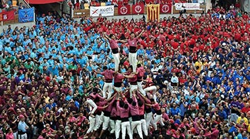 2016-11-13 09:56:56第26届“叠人塔”比赛于10月1号和2号在西班牙加泰罗尼亚地区的塔拉戈纳市竞技场举行。来自中国的“桃花庄叠人塔队”参赛,并向世界纪录的九层“人塔”发起冲击。最终中国队挑战成功。“叠人塔”大赛每两年举办一次,这项运动起源于18世纪末,是西班牙加泰罗尼亚地区最具特色的传统民俗活动之一。[详细]