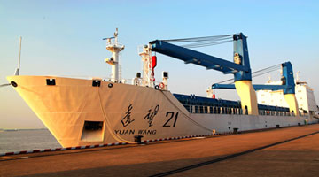 2016-08-23 07:14:03经过连续4昼夜的海上编队航行,担负“长征五号”火箭吊装和海上运输任务的“远望号”火箭运输船队,20日上午顺利抵达天津港。[详细]