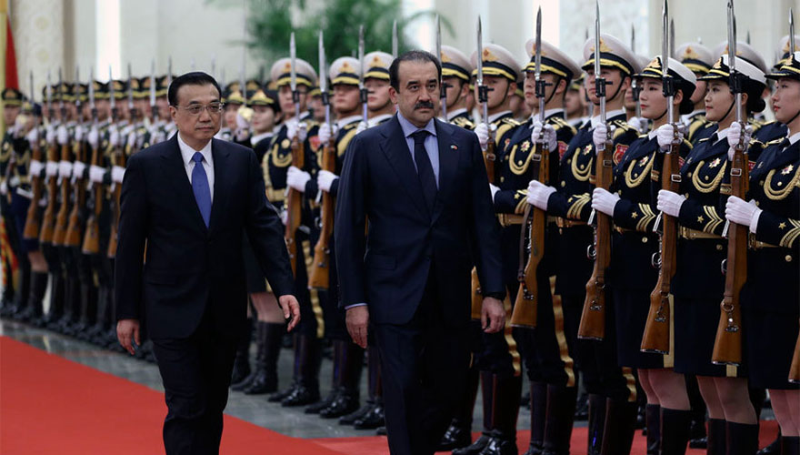 12月14日,国务院总理李克强在北京人民大会堂同来华进行正式访问并出席上海合作组织成员国政府首脑(总理)理事会第十四次会议的哈萨克斯坦总理马西莫夫举行会谈。