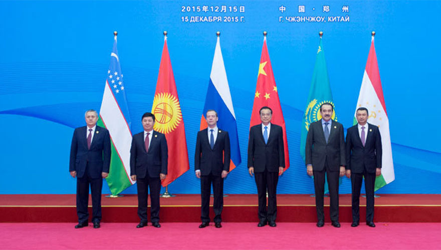12月15日,上海合作组织成员国政府首脑(总理)理事会第十四次会议在郑州举行。这是小范围会谈前,国务院总理李克强迎接参加会议的各国领导人并与他们合影。