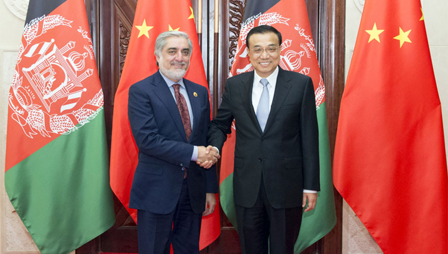 12月15日,国务院总理李克强在郑州黄河迎宾馆会见来华出席上海合作组织成员国总理第十四次会议的阿富汗首席执行官阿卜杜拉。