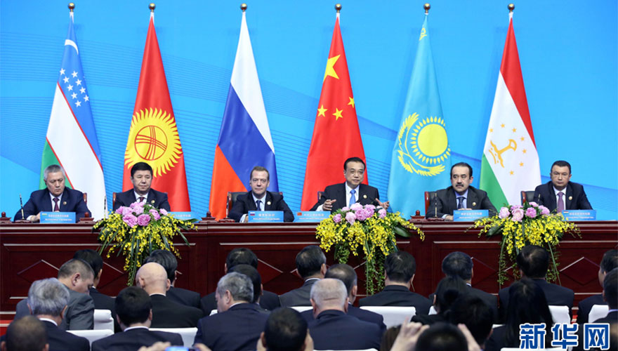 12月15日中午,上合组织成员国领导人在郑州国际会展中心出席上合总理会后共见记者。李克强总理表示,上合领导人一致认为过去一年多来的地区合作卓有成效,同时也面临严峻复杂的挑战。上合组织应聚集力量,挖掘潜力,打造六大合作平台,推动合作向更高层次发展。