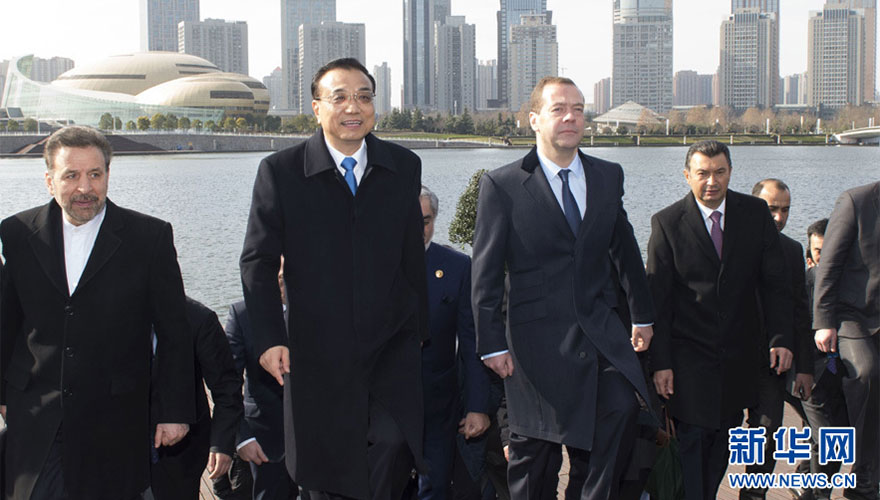 李克强与出席上海合作组织总理会议的各国领导人共同参观城市建设