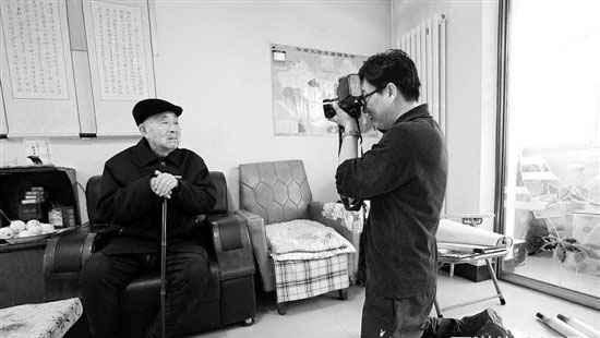 戚辉拍摄抗战老兵并非偶然,多年来,他一直关注这一群体,并为此查阅了大量资料。然而,寻访老兵的过程异常艰苦。线索大多是通过亲友和热心人士辗转获得,往往只知道老兵住在哪个村庄,连名字都不清楚,需要到村里挨门逐户地打听。戚辉曾经在凌晨出发赶到一个小山村,却由于老人的家属不同意拍摄无功而返;也曾独自一人在电闪雷鸣的山路上奔波,一天寻访下来,回家连上楼的力气都没有……