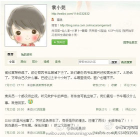 7月23日20时27分,一条来自新浪网友“Smm_苗”的微博引起广大网民的高度关注:“狂风暴雨后的动车这是怎么了?爬的比蜗牛还慢……可别出啥事儿啊。”11分钟后,“Smm_苗”所描述的这辆北京至福州的D301次列车在温州市双屿路段,与杭州开往福州的D3115次列车发生追尾,造成6节车厢脱轨,其中4节从高架桥上掉落。“D301在温州出事了,突然紧急停车了,有很强烈的撞击。还撞了两次!全部停电了!我在最后一节车厢。”几乎在事故发生的同时,新浪网友“袁小芫”发出了第一条微博,令数万网民在第一时间得知了这一信息。比国内媒体在互联网上的第一条关于“列车脱轨”报道早了两个多小时。