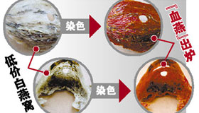 2011年8月15日,浙江省工商部门在流通领域食品质量例行抽检结果的通报中显示,血燕中的亚硝酸盐含量严重超标,浙江问题血燕的数量达20万克,约3万盏,平均亚硝酸盐含量达4400毫克/公斤,亚硝酸盐含量最高达11000毫克/公斤。据悉,亚硝酸盐具很强毒性,摄入3g即会引死亡。此前,声称是马拉西亚相关机构人士对血燕亚硝酸盐超标问题进行澄清,近日被爆出系假冒造谣。这一系列的毒血燕事件引出了中国乃至整个东南亚血燕市场的巨大黑洞。《钱江晚报》记者在走访马拉西亚真正的燕窝产业相关人士时发现:真血燕产量极少,80%内销,在中国销售的绝大部分“血燕”都是“毒血燕”。而血燕的染色成本较低,售价较高,此间巨大的利益空间让商家为此乐此不疲。