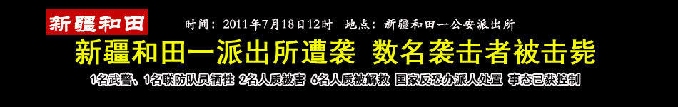 2011年7月18日12时许,新疆和田市一公安派出所遭一伙暴徒袭击。暴徒冲进派出所袭击民警,劫持人质并实施纵火。公安、武警迅速赶赴现场,当场击毙数名正在行凶和负隅顽抗的暴徒,成功解救6名人质。