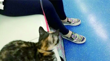 2016-11-08 11:50:08陈先生告诉北京晨报记者,昨日上午10时许,他乘坐开往郭公庄方向的9号线地铁,看到车厢内有一女子带着一只宠物猫,“猫都被带进了地铁,还占了一个座位。”记者从陈先生提供的照片看到,车厢内一女子坐在座椅上,左手腕系一绳子,另一头拴在猫脖子上,猫则卧在旁边座椅上。陈先生指着照片中该女子座椅底下的笼子说:“到丰台南站时,我看到她将猫装进了这个笼子下车。”记者了解到,宠物进入地铁引起网友热议,部分网友担心,乘客有被抓伤的危险。[详细]