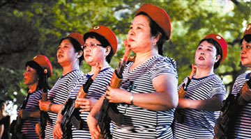 2014-07-27 10:58:38近日,一组“北京大妈街头持枪跳舞‘打鬼子’”的照片在全国范围内被大量转发,这一消息被网友们评价为将广场舞跳到了“极致”,并引来了种种争议,点赞和批评的两拨儿人马甚至在网上吵了起来。但作为当事人的表演团队对此却毫不知情。团队成员都是老年人,不怎么上网,他们被告知自己编排的舞蹈在网上广受好评。[详细]