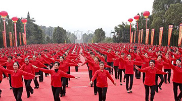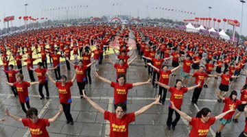 在“西班牙斗牛舞”乐曲的伴奏下,5万多名广场舞爱好者统一着装,在北京奥林匹克中心主会场和上海、深圳、成都、西安、沈阳等13个分会场同一时间、同跳一支广场舞,挑战最大规模多场地排舞吉尼斯世界纪录。[详细]