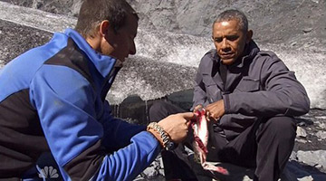 2016-01-07 07:16:12美国总统贝拉克·奥巴马和英国野外生存专家贝尔·格里尔斯在阿拉斯加州“荒野求生”的节目17日晚在美国全国广播公司(NBC)播出。奥巴马在“贝爷”带领下,喝野花做的茶,吃被熊啃过的鲑鱼,谈论做父亲的感受,讨论气候变化议题,讲述贝爷喝尿的经历和远离平凡人生活的各种挑战。[详细]