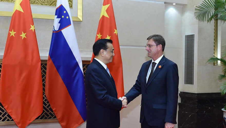 11月24日,中国国务院总理李克强在苏州会见来华出席第四次中国—中东欧国家领导人会晤的斯洛文尼亚总理采拉尔。