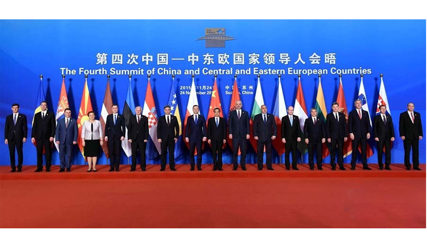 11月24日,国务院总理李克强在苏州太湖国际会议中心与中东欧16国领导人共同出席第四次中国-中东欧国家领导人会晤。李克强主持会晤。这是李克强同与会领导人合影。