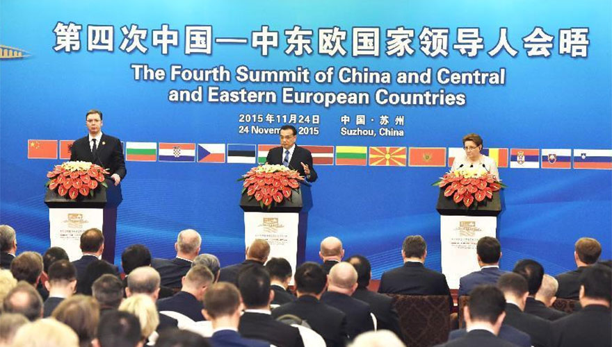 当地时间2014年12月16日下午,国务院总理李克强在贝尔格莱德出席第三次中国-中东欧国家领导人会晤。中东欧16国领导人与会。李克强与塞尔维亚总理武契奇共同主持会晤,与会各方就进一步拓展中国-中东欧国家合作进行深入讨论,达成广泛共识。会晤后,中国与中东欧16国共同发表《中国-中东欧国家合作贝尔格莱德纲要》。
