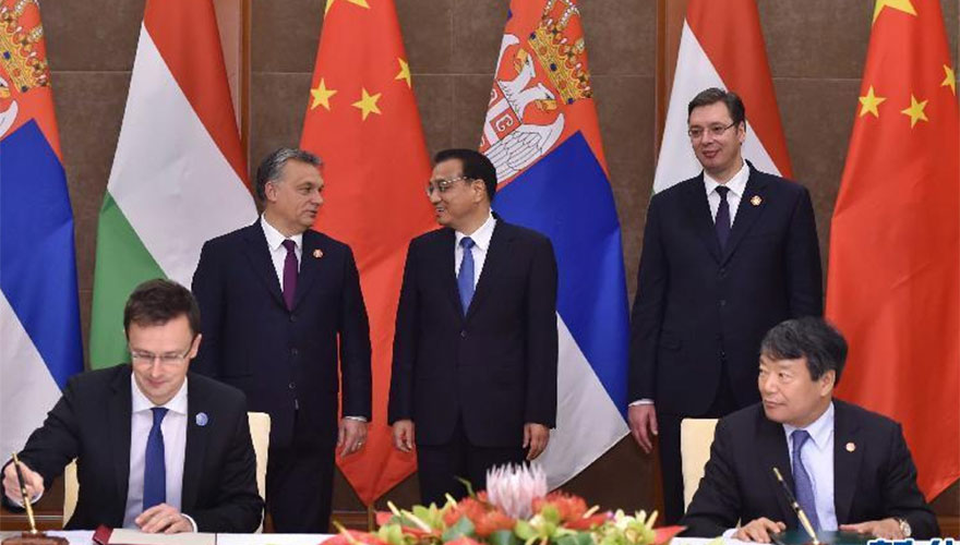 11月24日,国务院总理李克强在苏州与匈牙利总理欧尔班、塞尔维亚总理武契奇共同出席中匈、中塞两国三方共同建设的匈塞铁路合作文件签字仪式。