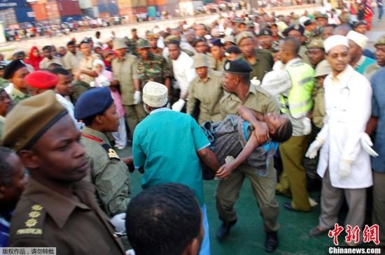 ¡¡¡¡µ±µØÊ±¼ä2012Äê7ÔÂ18ÈÕ£¬Ì¹É£ÄáÑÇÉ£¸ø°Í¶ûµº¸½½üº£Óò£¬Ò»ËÒÔØÓÐÔ¼300Ãû³Ë¿ÍµÄ¶É´¬³Áû¡£Í¼Îª¾ÈÔ®ÈËÔ±ÇÀ¾ÈÐÒ´æÕß¡£
