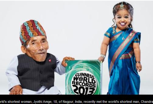 ¡¡¡¡8ÔÂ29ÈÕ£¬ÊÀ½çÉÏ×î°«µÄÄÐÈË¡ª¡ª72ËêµÄÄá²´¶ûÀÏÈËÇ®µÂÀ¡¤°Í¹þ¶Å¶û¡¤ÌƼª(Chandra Bahadur Dangi)ºÍÊÀ½çÉÏ×î°«µÄÅ®ÈË¡ª¡ªÓ¡¶È18ËêÅ®º¢Çǵ١¤°¢Âêç÷(Jyothi Amage£©½üÈÕÔÚÒâ´óÀûÊ×´ÎÏàÓö£¬¶þÈËΪ½«ÔÚ2013Äê³ö°æµÄµÚ57°æ¡°¼ªÄá˹ÊÀ½ç¼Í¼´óÈ«¡± ÅÄÉãÐû´«ÕÕ¡£
