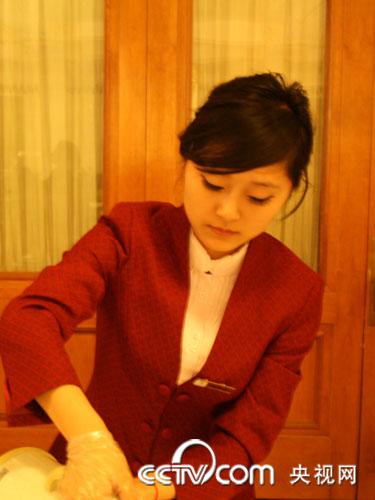 中国网络电视台消息(记者马芳)每年“两会”期间,大会堂里都会忙碌着这样一群身影——身着红装的女服务员,默默地为前来休息区谈话休息的代表委员、媒体记者、工作人员等冲泡好一杯杯热茶。由于前来休息的人员流动量很大,她们几乎一刻不停地在埋头工作,用真诚和耐心为人们送上周到的服务和甜美的微笑。