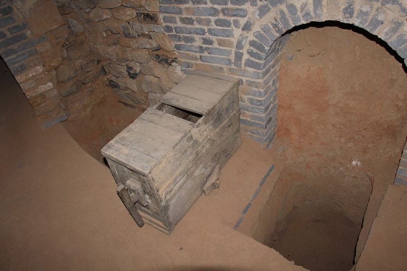 抗日军民在峭壁上开凿三个仅容一人的掩体,只有十几厘米见方的射击孔,正好封锁了上山必经的“天梯”。