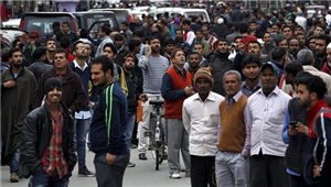 印度北部城市Srinagar人们撤离到室外。