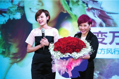 老板李静送给叶一茜99朵玫瑰。本报记者吴平摄
