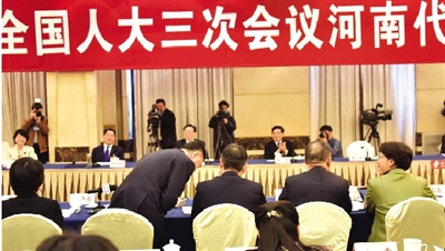 河南代表团媒体开放日上,全国人大代表现场鞠躬请记者捎话给教育部部长