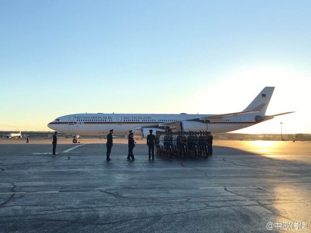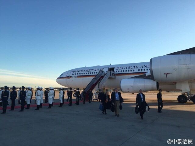 原标题:德国总理默克尔乘坐专机抵达北京国际机场