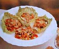 材料:生菜 300克熟冬菇粒、胡萝卜粒、竹笋粒、西芹粒、碎果仁各2汤匙、粉丝一小把、姜汁1茶匙、油2汤匙