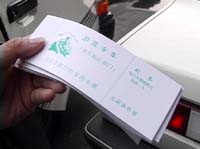 随后,这位大妈把记者带到了前门附近的一个小巷子。在每人交纳了一百元的报名费之后,他们拿到了一张注明了不能报销的车票,在车票上只写明了八达岭长城、十三陵、十三陵水库三个景点,原来大妈承诺的那几个小景点却不见了。