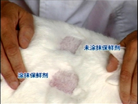 我们将PH值为1和0、8的荔枝保鲜剂分别在白兔和小白鼠身上做实验。
