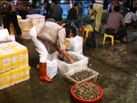 每天凌晨三点开始,我们厦门的东渡水产批发市场就开始热闹忙碌起来,来自全国各地的水产批发商和附近的渔民们就汇集在这里,进行各种海鲜水产品的交易,我们全市百分之九十的以上的餐馆、酒楼和普通人家所需海鲜产品都是来自这个批发市场,也就是在这个时候,厦门市工商局的执法人员开始了第一轮的把关检测。