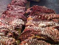 这只是沈阳市“放心食品工程”联合执法队查处的众多私屠滥宰窝点中的一个。据介绍,沈阳市牛肉市场上,不法商贩贩卖注水牛肉、病死牛肉,坑蒙消费者的情况时不时地发生。就是这次执法行动前的几天,在沈阳市西北郊的于洪区平罗镇,人们发现了这里的秘密。在这个镇北侧一个农家小院旁,有一头牛正在吃饲料,而地上的牛粪和堆成小山似的牛皮则说明这附近是宰牛的加工点。