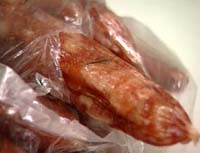 陈先生的问题是解决了,可到底是什么原因造成了过期食品还在销售呢?而且在这包过期火腿肠上还有异物呢!接到举报后,武汉市工商局对这家商场进行了查处。负责人解释是由于分装秤没有按照正规的日期调整,可当我们要求看看大包装上的日期时,营业员却说大包装都已作为垃圾运走了。那么火腿肠上过期的日期是怎么回事呢?