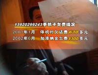 天津市民李志勇告诉我们,他被移动公司催缴一个号码为13920299243的全球通手机卡的欠费。据移动公司清理欠费办公室讲,手机卡早在2001年1月份就因欠费被停机了,到2002年6月份的欠费数额为1300多元。然而,李志勇,从来没有接触过这个139的号码,因为2001年他正在读大学,这之前他从来就没用过手机,又何来欠费一说呢?
