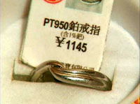 去年底,武汉的余先生在武汉市武昌区的中商广场购买了一枚戒指,吊牌上写有“含钯1%” 的字样,营业员介绍说:钯能使铂金的颜色更亮,保持得更持久,因为铂金本身具有氧化性,而钯金具有抗氧性,所以,这一般都用在高科技上的金属价格是要比铂金还贵的。余先生买了戒指,可吊牌上标明的型号是PT950,而发票上开的是PT900,因为这直接涉及的是戒指中白金的含量,余先生找到了商场。商场告诉他,因为这个厂家只有一个条码,所以PT950跟PT900的条码是一样的,可余先生却反问说PT900 PT950的价格是不一样的,为什么条码会一样呢?商场告诉他可以去做鉴定,鉴定之后有什么问题,一切后果由他们负责。