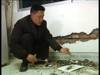裂缝有水平的也有斜的,有横的竖的预制板和地板上的裂缝,也有大梁上斜的裂缝,总之家里到处裂缝。在詹先生两室一厅的家里,就有大大小小近20条的裂缝,并且据詹先生的观察,这些裂缝是逐渐增加增大的,住在这样的房里,詹先生的担心也与日俱增。据了解,家里出现裂缝的有1号的第三单元和2号楼的第3单元,共14家住户,在一位王先生的家里,大梁的地方有很多裂纹,当把装修的水泥层剥掉时,一道很明显的裂缝出现在大梁上,承重的大梁已经断成了三截。在其他装修过的住户家里,表面上看起来虽然是小的裂纹,实际上墙体裂缝已经很大了。而一位钟先生在夜里还听到过地板破裂的声音。