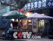 这几位用自行车驮货的算是小户吧,记者跟上了这位穿黑衣服的男子,只见他走街穿巷, 最后来到了沈阳市和平区太原北街的一家羊杂馆。